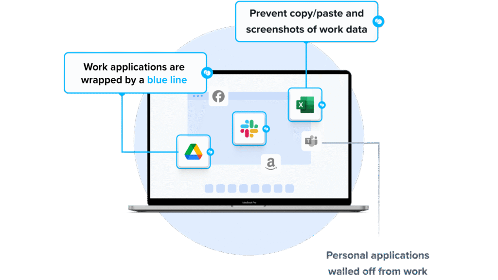 - Secure Enclave technology: Encrypts and isolates work data on personal Mac or PC computers, both for browser-based and local applications.