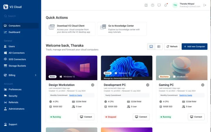 V2 Cloud is a Desktop-as-a-Service solution to simplify remote desktop delivery for businesses. It provides secure, browser-based access to virtual desktops, helping support remote work, BYOD policies, and collaboration.