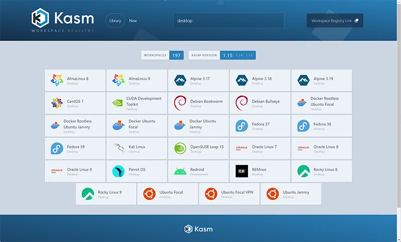 Kasm Workspaces is a browser-based workspace streaming platform that delivers desktops, applications, and cloud browsers to any device. It supports cloud desktops, web isolation, remote access, and app streaming, including Windows and Linux workspaces, optional GPU acceleration, developer APIs, and infrastructure-as-code deployments with Ansible and Terraform.