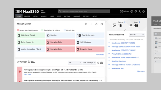 IBM MaaS360 is a unified endpoint management (UEM) platform to manage and secure mobile devices and laptops from a centralized console. It provides built-in security controls, AI-driven analytics, and automated policy enforcement to support hybrid and frontline workforces. The platform enables organizations to configure devices, manage applications, and maintain compliance through a single dashboard.