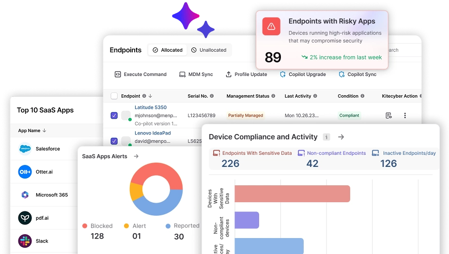 Zero trust enforcement: Verifies device compliance before granting access to corporate resources- Data loss prevention (DLP): Scans devices for sensitive data and enables remote encryption or deletion