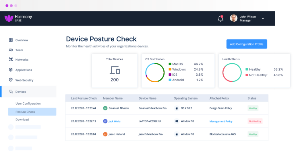 Zero trust enforcement: Verifies device compliance before granting access to corporate resources- Data loss prevention (DLP): Scans devices for sensitive data and enables remote encryption or deletion