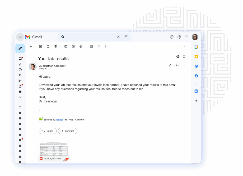 - HIPAA-compliant encrypted email: Send secure messages through Google Workspace and Microsoft 365 without requiring portals or extra steps.