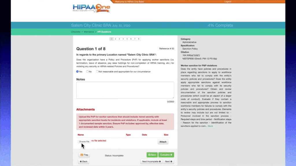 - Automated risk assessments: Built-in tools guide organizations through security risk assessments, automatically identifying gaps in compliance and suggesting mitigation strategies based on HIPAA standards.