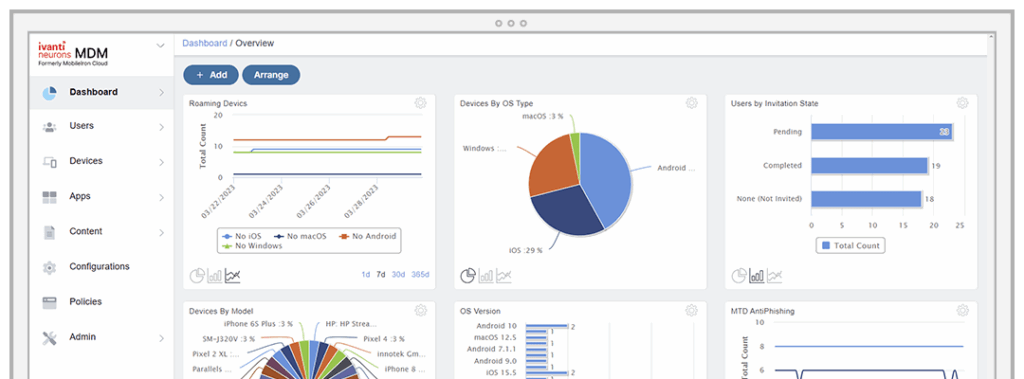 Ivanti MDM is a mobile device management solution to help organizations manage, secure, and scale the use of mobile and desktop endpoints across diverse environments. Part of the Ivanti Neurons platform, it supports BYOD and corporate devices across Android, iOS, macOS, and Windows operating systems.