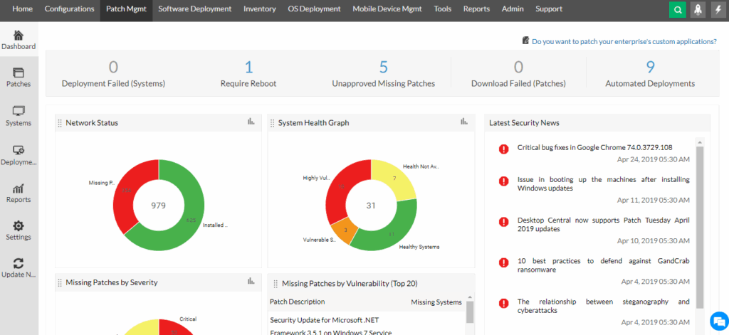- Automated patch management: Automatically deploy patches for operating systems and third-party applications across Windows, macOS, and Linux endpoints.