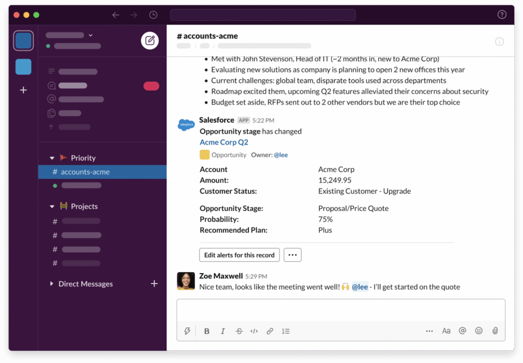 - Slack Connect: Collaborate securely with external partners, vendors, and clients in shared channels without leaving Slack
