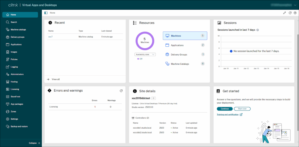 - Web Studio and Citrix Studio: Centralized consoles for configuring and managing the environment. They provide tools for workload creation, policy configuration, and license allocation.