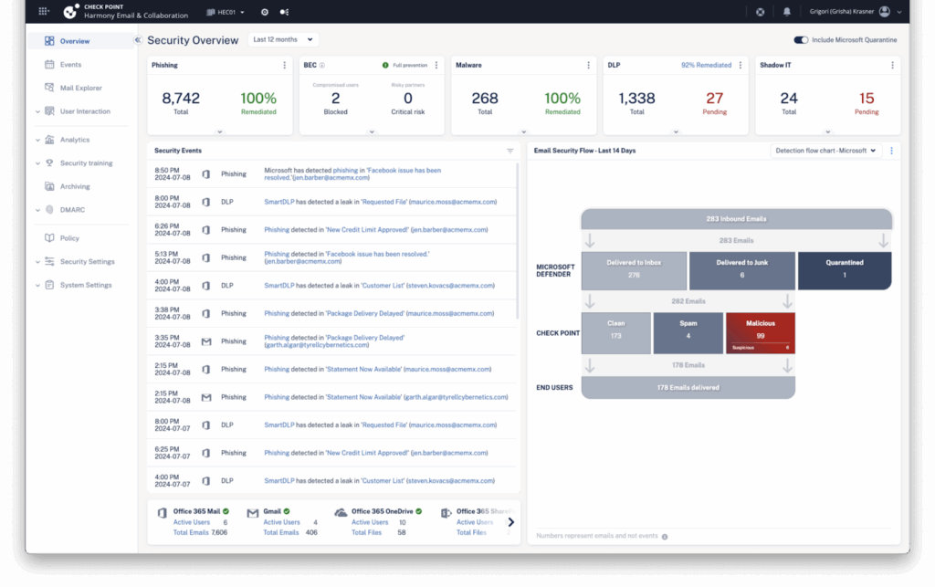 - AI-powered threat prevention: Applies AI-driven protections to detect and stop phishing, ransomware, and other attacks across email, web applications, devices, and remote access.